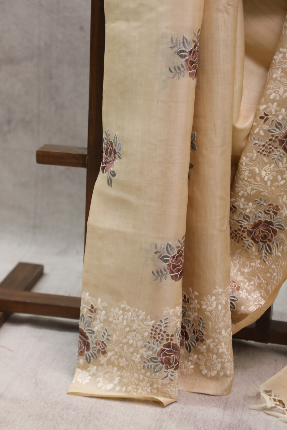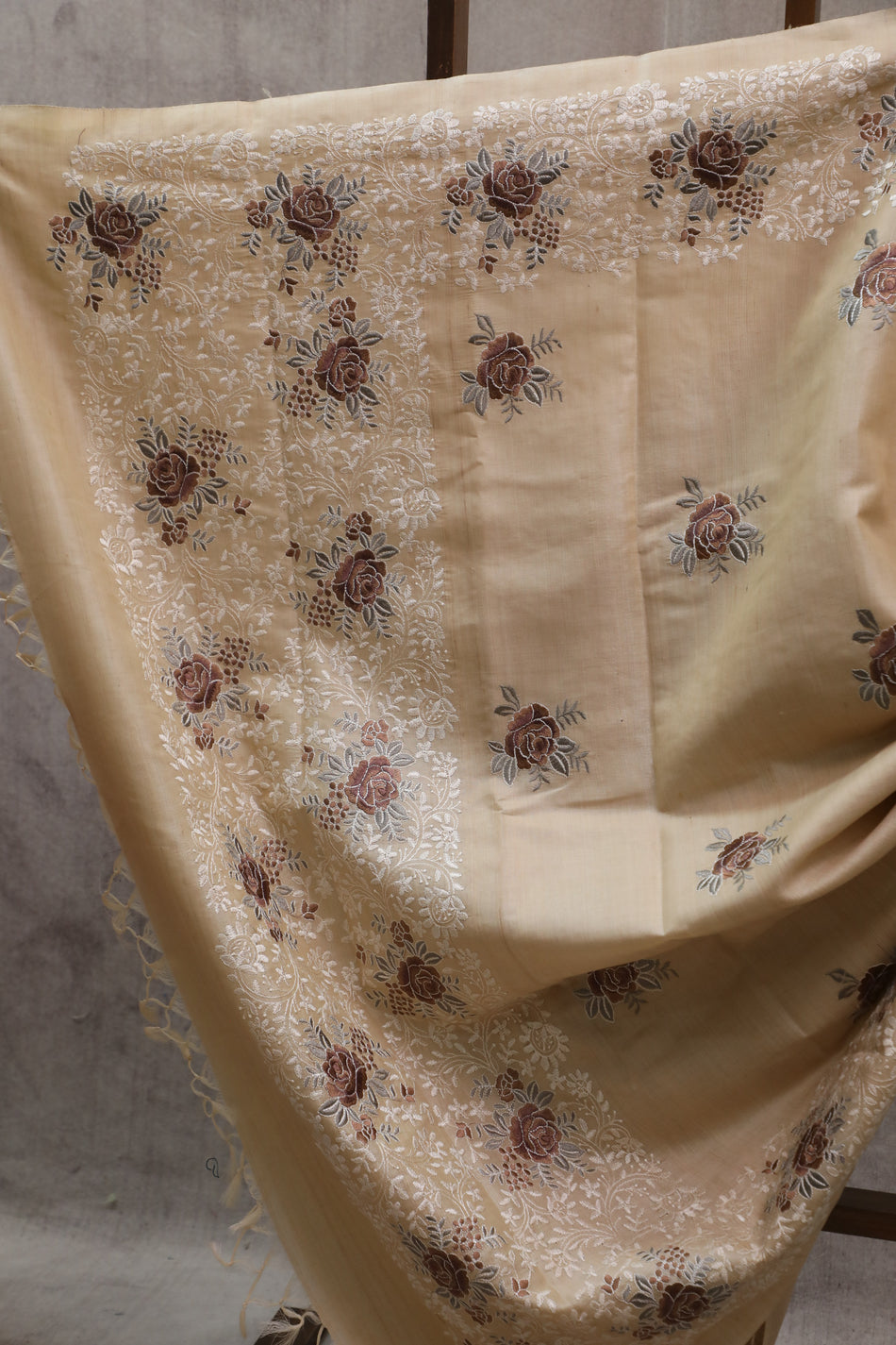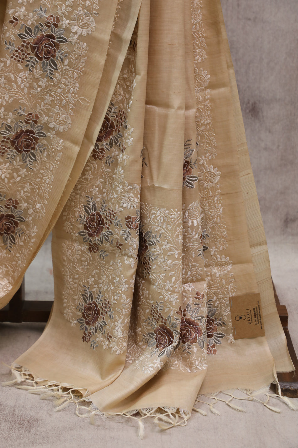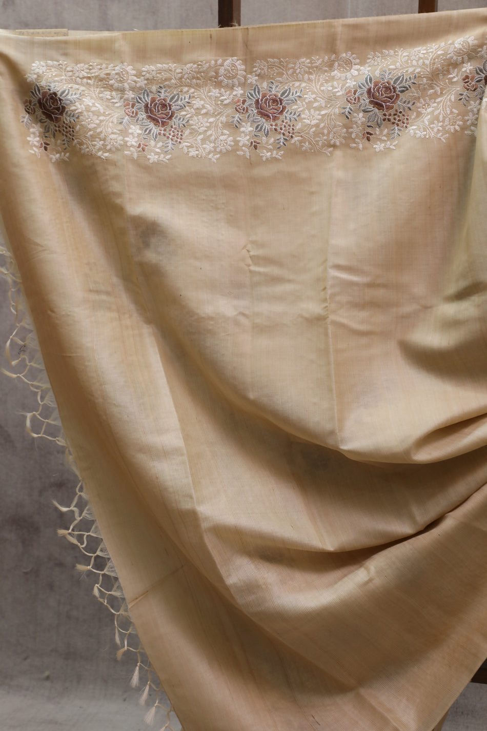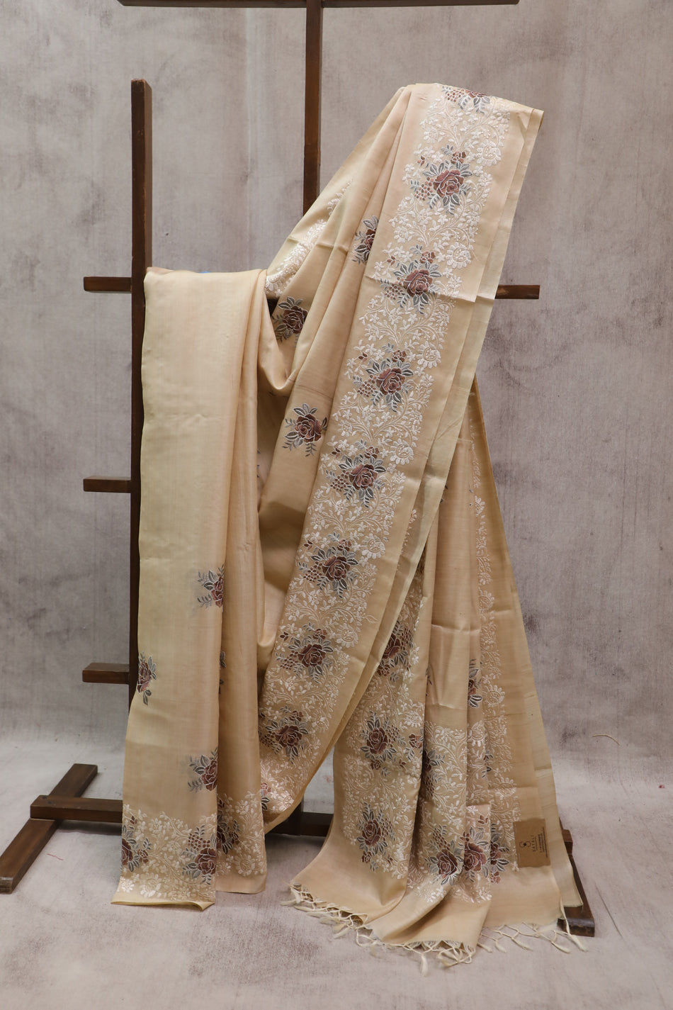 Bhagalpuri Pure Tussar Silk Saree With Beautiful Embroidery Work Saree BSE24