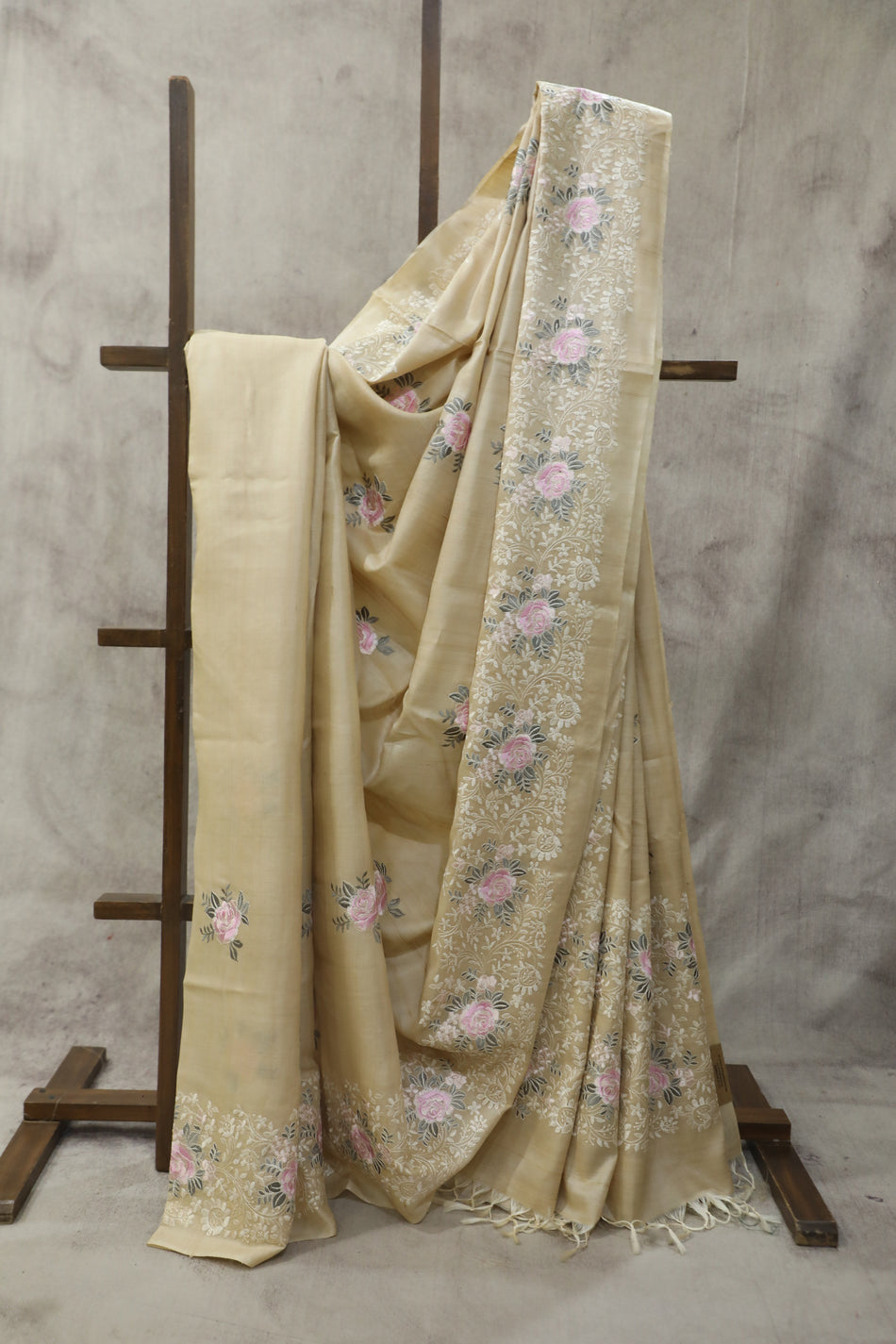 Bhagalpuri Pure Tussar Silk Saree With Beautiful Embroidery Work Saree BSE36