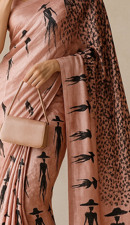 A hand-printed pure tussar silk saree by AB Fabrics is a garment of natural elegance and rich texture. Woven from the silk of wild silkworms, tussar silk is known for its characteristic golden hue and subtle sheen. The fabric is lightweight, breathable, and has a comfortable, airy feel, making it suitable for various climates.
