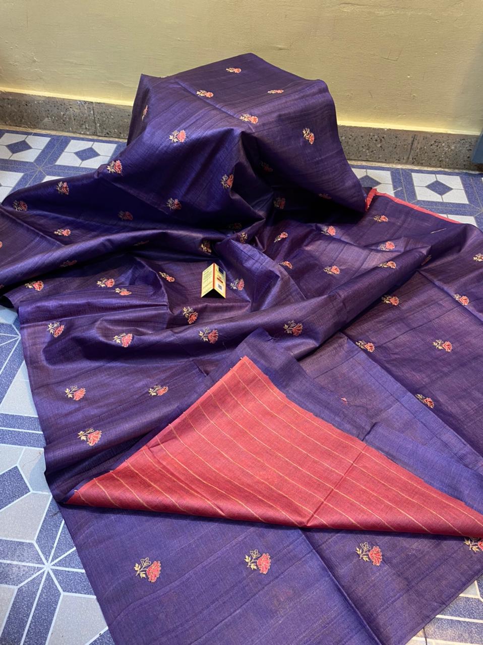 Pure Tussar Silk Saree With Beautiful Embroidery Work TSE08